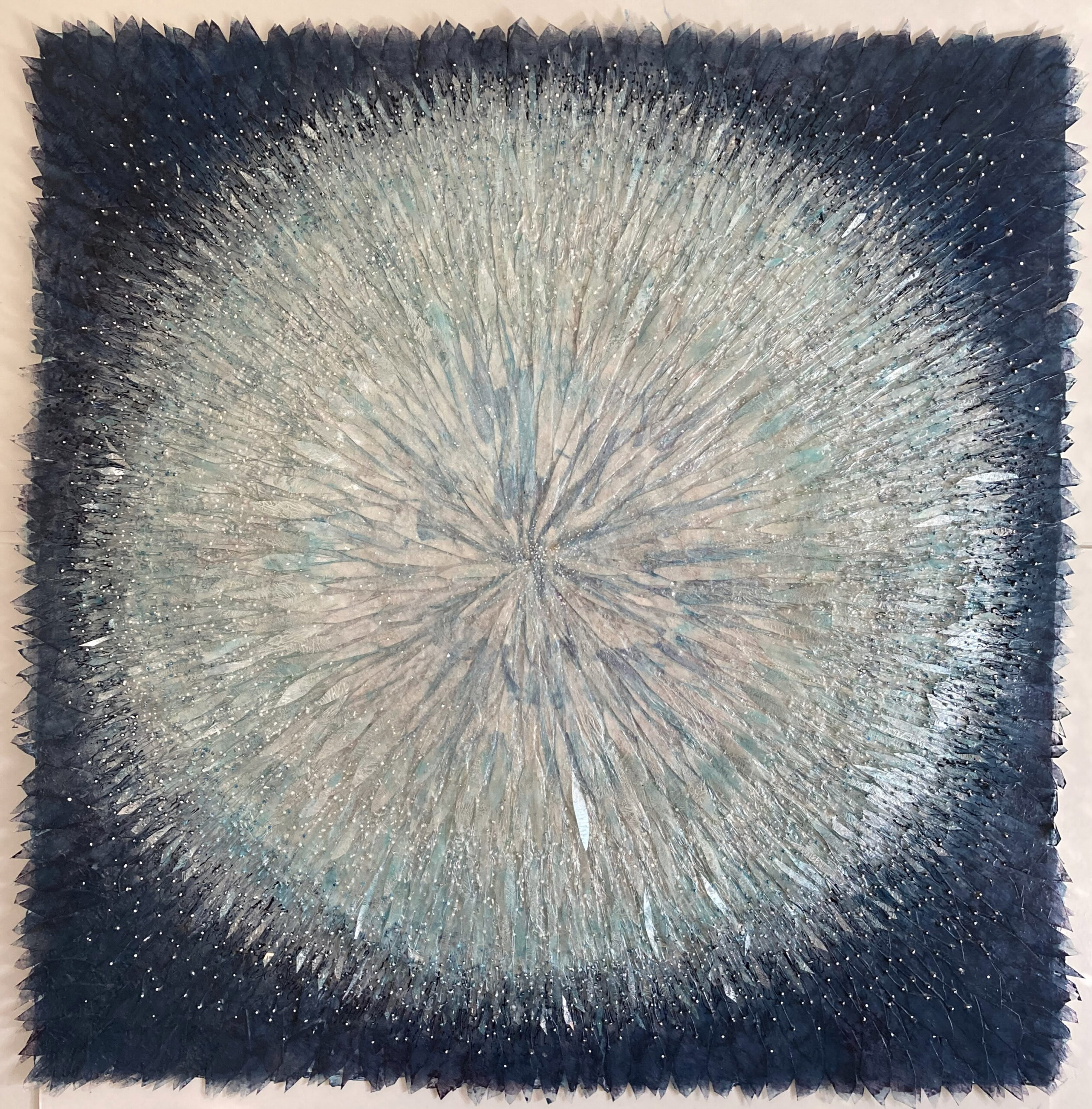Ritva is a Finnish artist based in the UK. Her work is mixed media – a blend of paper and thread, gemstones and charms, oil and acrylic paint, all hand-crafted together with evocative metaphor. Many find her work expresses that lovely energy of a happy memory and relaxing nostalgia. All find the work rich with detail, worthy of standing to enjoy and review again and again.